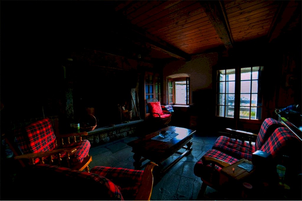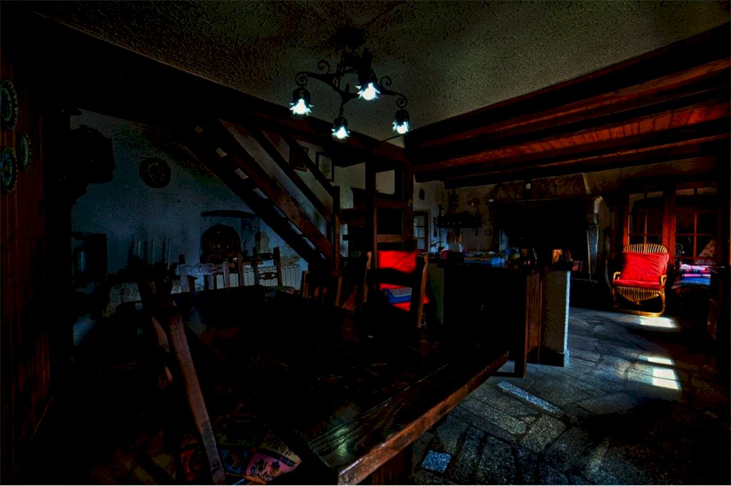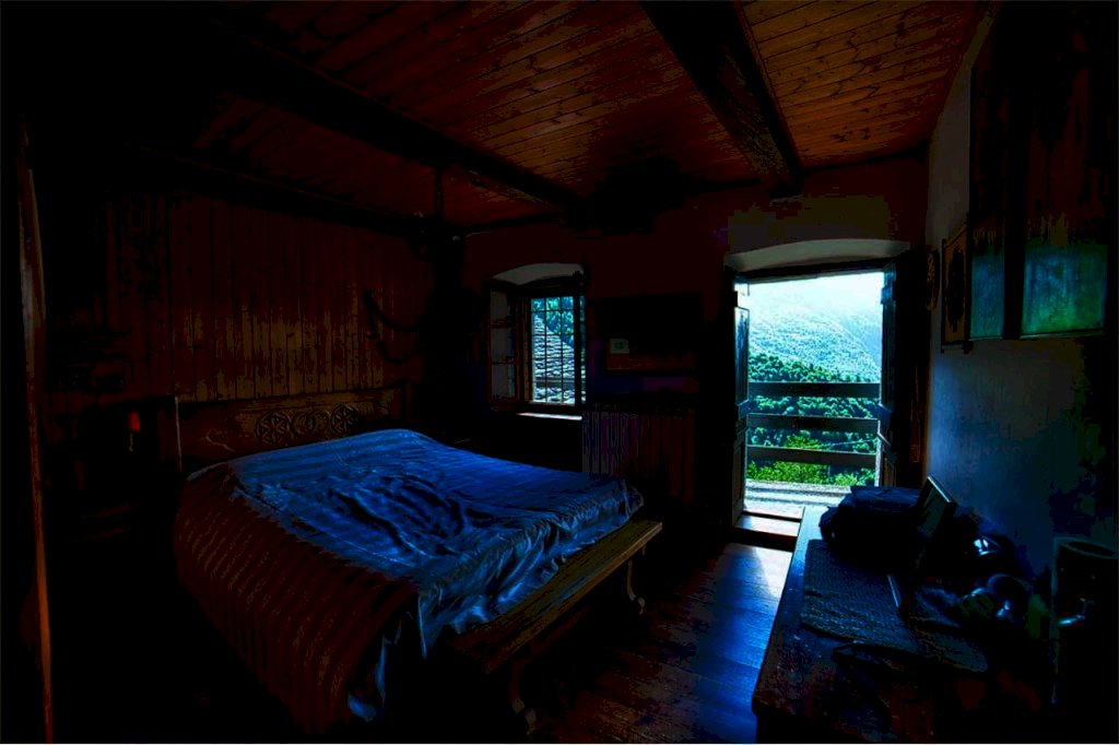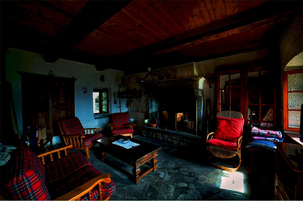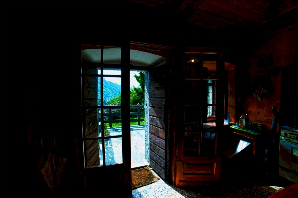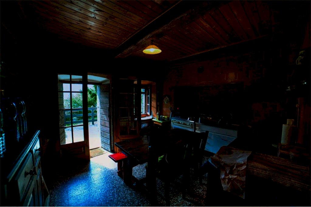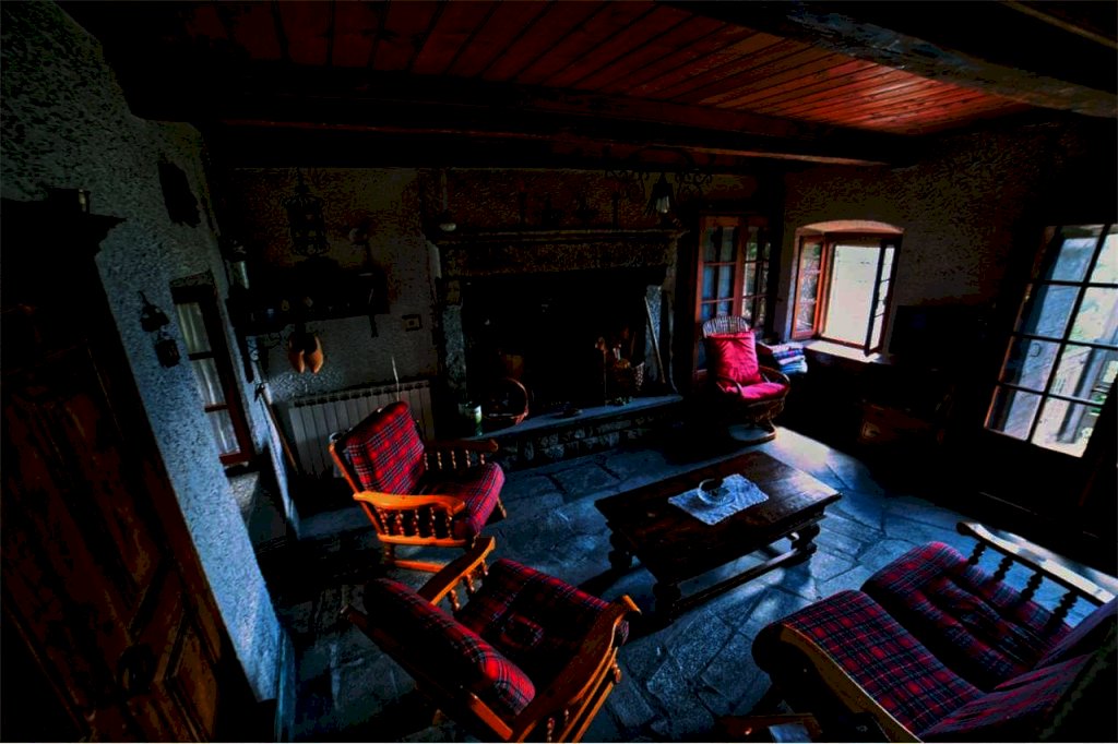 Giunti all'esterno della proprietà, entriamo da scalinata in sasso, a risosso del del giardino. Superato il terrazzo di circa dieci di metri quadri, prospicente l' entrata al piano terra, ci accoglie un confortevole ambiente abitativo quasi totalmente in legno, sia nella struttura sia nei mobili e negli armadi, in buona parte a muro. Troviamo da subito una sala da pranzo,una cucina abitabile con vano lavabo e bagno con doccia a fianco; abbiamo poi un' ampia zona rustica formata da altra sala da pranzo e suggestiva sala soggiorno col camino d'atmosfera.