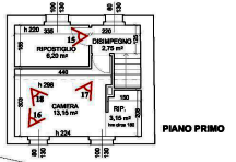 L'abitazione è composta da: piano terra cucina, bagno e scala di collegamento al piano primo. Piano primo disimpegno, camera con ripostiglio.