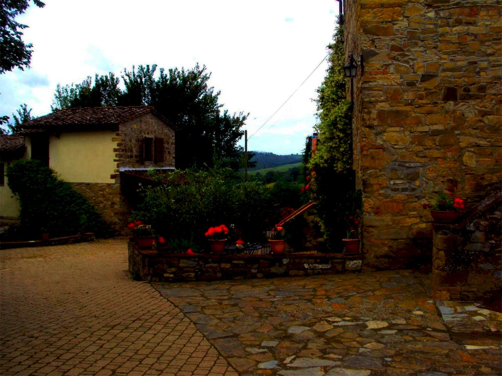 Terreno circostante di circa 14 ettari. di cui 3,2 a vigneto pregiato Chianti Classico, 2 ad uliveto ed il resto seminativo e boschivo.