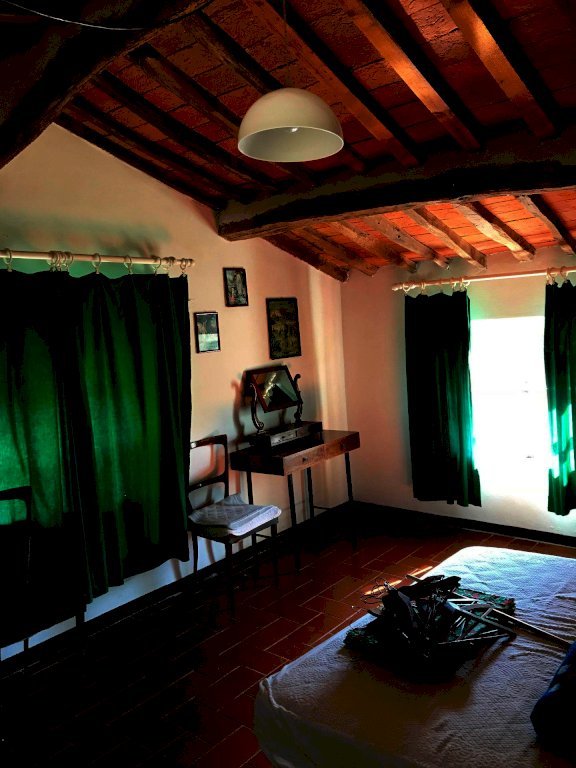 Il terzo casolare, di circa 250 mq, lambito da un ruscello e ombreggiato da un fitto boschetto, sembra quasi volersi nascondere alla vista: accoglie al piano terreno il frantoio settecentesco, in attività fino ai primi anni settanta, mentre recenti studi identificano la struttura come una delle prime in zona, costruite per la follatura e lavorazione della lana. Il piano terra e primo ospitano invece un’abitazione spaziosa, con 3 camere, sala, cucina e due bagni. Attorno ai tre casali si trova il bel giardino piantumato con essenze tipiche del Monte Pisano, percorso da sentieri e comode scalinate, mentre appena oltre si trovano circa 12.000 mq di oliveta con alberi secolari in produzione. E’ presente anche un annesso in pietra totalmente diruto.