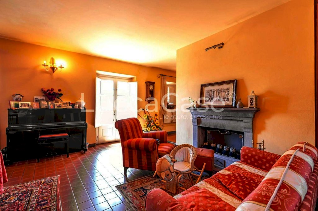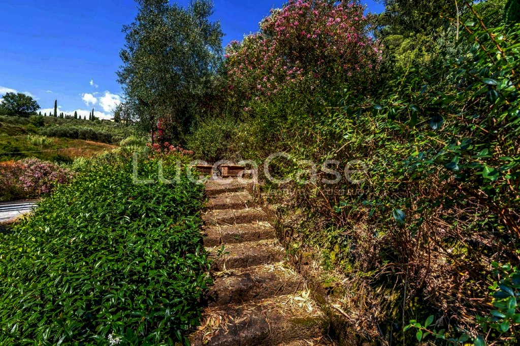 All'esterno, accessibili dal soggiorno e dalla cucina, abbiamo delle parti pavimentate in cotto, ben soleggiate e sfruttabili per molti mesi l'anno. Oltre il lastricato, il verde del prato si mantiene in una prima parte pianeggiante e allo stello livello del piano terra, per poi scendere con lievi pendenze e con basse poggiate che scendono fino alla strada sterrata di accesso. A pochi metri dalla casa, su un pianoro ben isolato e ottimamente piantumato con alberi e siepi, è presente la bella piscina interrata, corredata da una grande pergola attrezzata. Nella parte a monte dell'edificio principale, un locale seminterrato a raso con il piano principale, si trova un grande garage per il ricovero delle macchine per la cura del verde. La vista è bellissima e le foto proposte non rendono giustizia al panorama.
