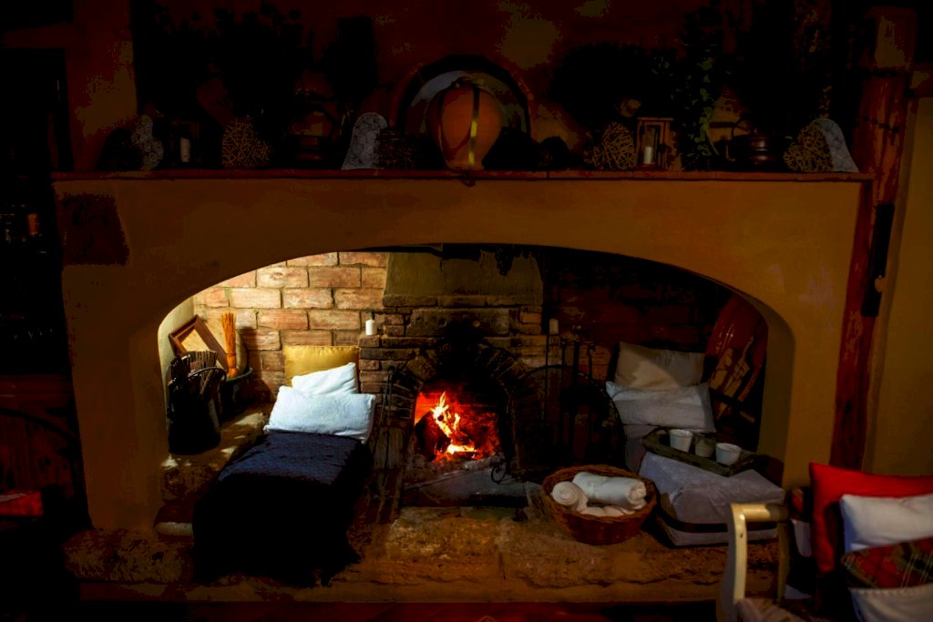L'interno del ristorante è in perfetto stile toscano comprensivo di caratteristica cantina per i vini e zona relax con un grande caminetto scenografico.