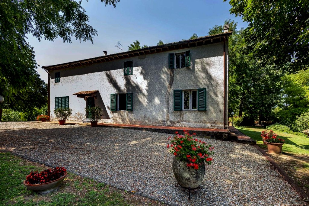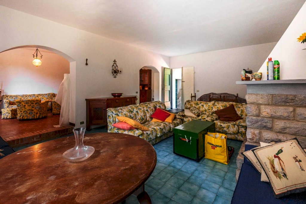 FAUGLIA: In bella posizione panoramica immersa nel verde, casa colonica di circa 330 mq gia divisa catastalmente in due appartamenti con ingresso a comune, cosi composti: Appartamento N 1 ampio soggiorno con camino, angolo cottura e sottoscala, al piano primo vano scale corridoio, 3 camere matrimoniali e bagno; Appartamento N 2 P. T. sala, cucina abitabile angolo cottura e salone con camino, P. 1 vano scale corridoio, bagno e 3 camere. La proprietà circa 3 ettari di terreno in parte a boschivo e in parte a parco con pozzo e due polle di acqua. L'immobile e' ben curato sia internamente che esternamente.