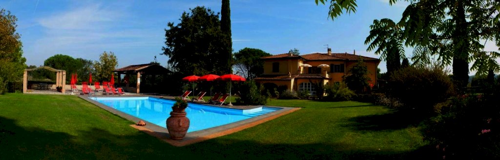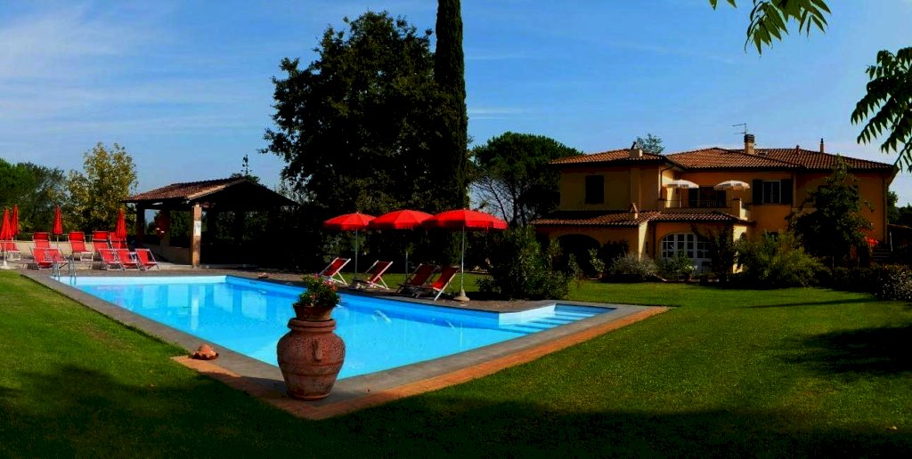 FAUGLIA antico casale stile leopoldina con terreno e piscina, ottima posizione immerso nel verde ma nelle immediate vicinanze delle vie di grande comunicazione. Il casale ristrutturato in stile rustico con travi a vista e pavimenti in cotto, è attualmente suddiviso in tre appartamenti indipendenti ma volendo collegabili fra loro, ed è circondato da 5.000 mq di giardino con piscina 6x12, locale tecnico e pergolato, un ricovero attrezzi agricoli di 95 mq con porticato e stalla di 70 mq. Il terreno di circa 32.000 mq che circonda la proprietà, parzialmente recintato, comprende 1 ettaro di uliveto, frutteto, orto e seminativo. Ideale per ricezione turistica oppure per condividere grandi spazi verdi fra più nuclei familiari.