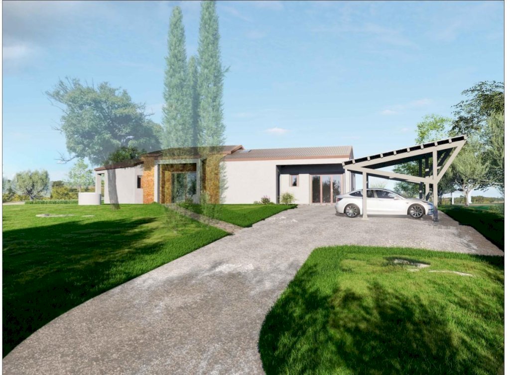 Il casale è completamente da ristrutturare e verrà venduto con progetto approvato che prevede la demolizione con la costruzione di una bellissima e moderna villetta tutta su un piano, un progetto dal design moderno e molto curato nei dettagli.