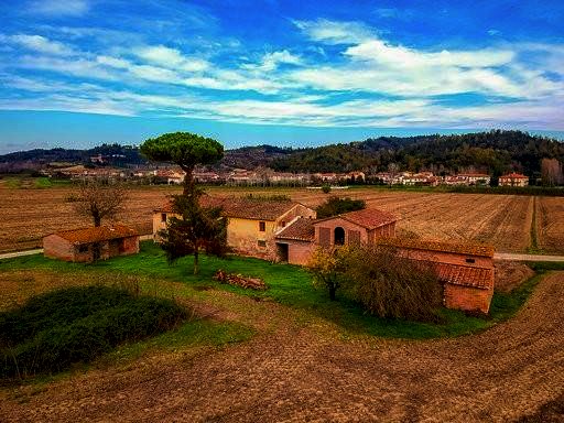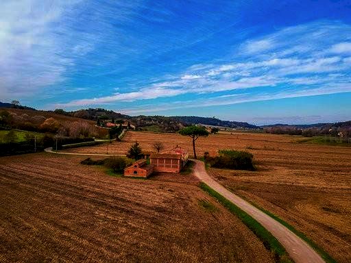 Tutta la proprietà è circondata da un ampio terreno, per una superficie complessiva di circa Ha. 23, interamente pianeggiante ed in buona parte seminativo.