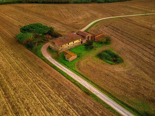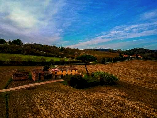 Complesso rurale costituito da un ampio fabbricato colonico, disposto su due piani fuori terra. I locali ad uso cantina, magazzini e granai comprendono il piano terra ed una porzione del piano primo. la restante superficie risulta ad uso abitativo e comprende una cucina al piano terra, sei vani oltre a bagno al piano primo. A destra del corpo principale, sul fronte strada, ampio loggiato chiuso ad uso riparo automezzi. Accanto al loggiato, fienile su due livelli da poter dividere in due appartamenti. Sul lato posteriore del fabbricato principale completano la proprietà due fabbricati destinati ad uso forno e porcile.