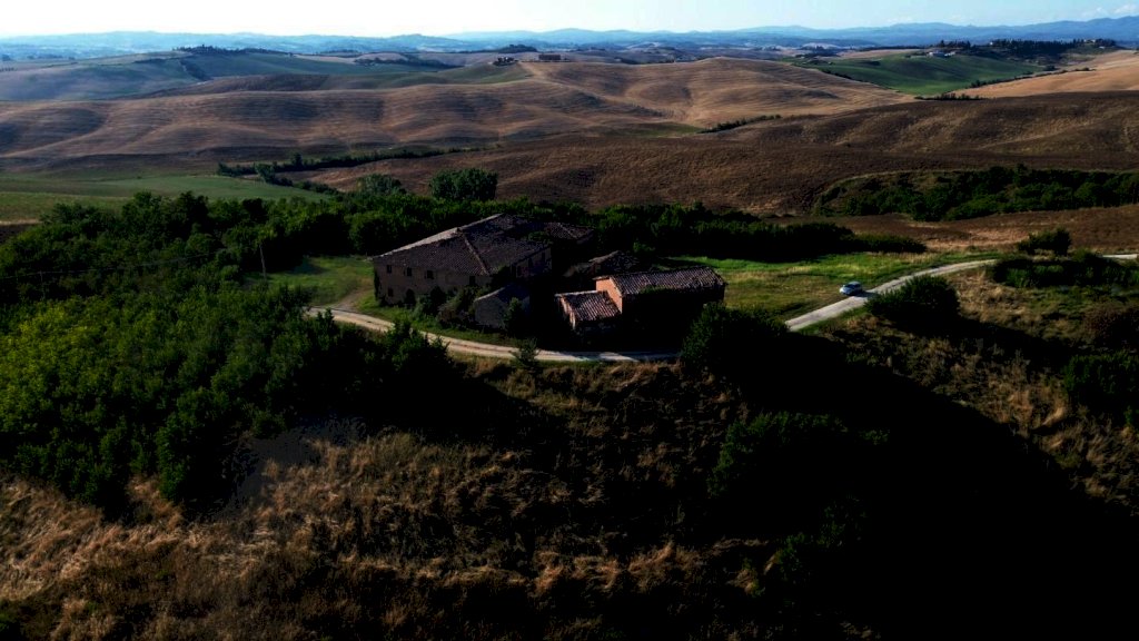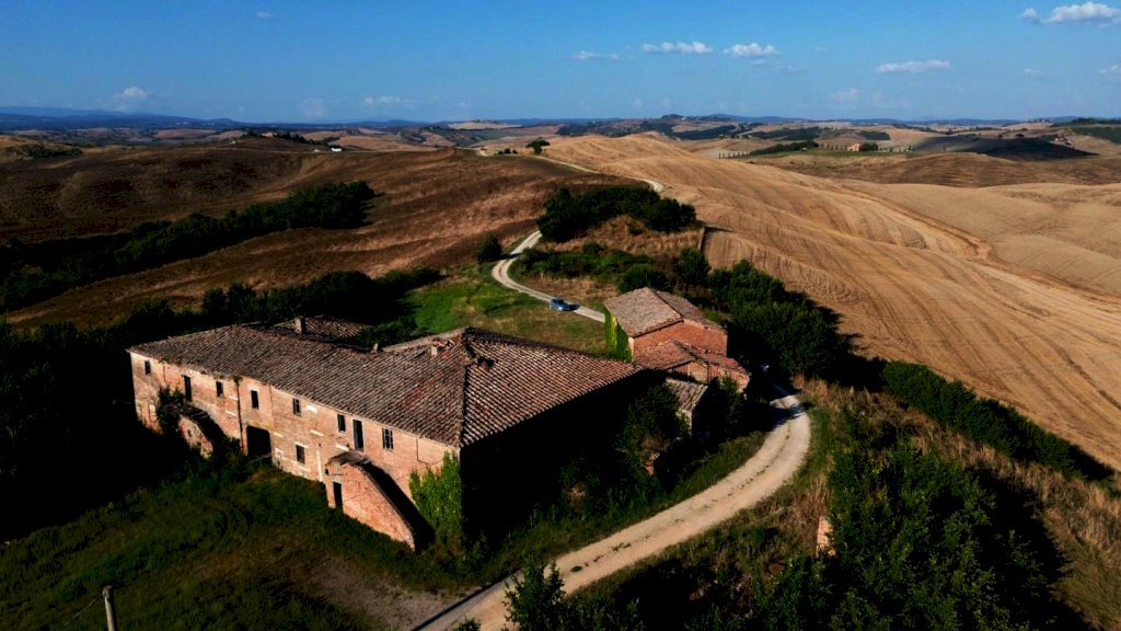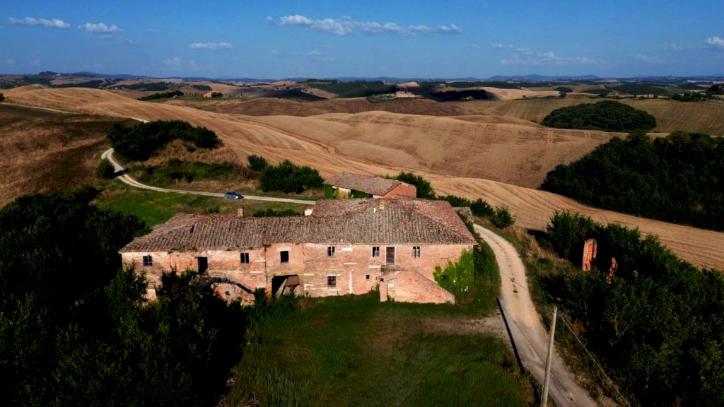 Monteroni d'Arbia - Adagiata in posizione dominante con vista panoramica a 360°, proponiamo in vendita esclusiva una proprietà unica risalente al Catasto Gregoriano incastonata nel cuore delle famose Crete Senesi, circondata da 2 ettari di terreno esclusivo dove poter realizzare un'oasi da sogno. Questa gemma di circa 1700 mq che si erge su di una collina con vista eccezionale sullo skyline della città di Siena e sulla campagna circostante, costruita originariamente ad uso contadino, conserva ancora oggi tracce suggestive della sua storia e dell'epoca, compresa una piccola chiesa privata di circa 30 mq risalente alla fine del 1200, posta di fianco alla struttura poderale.