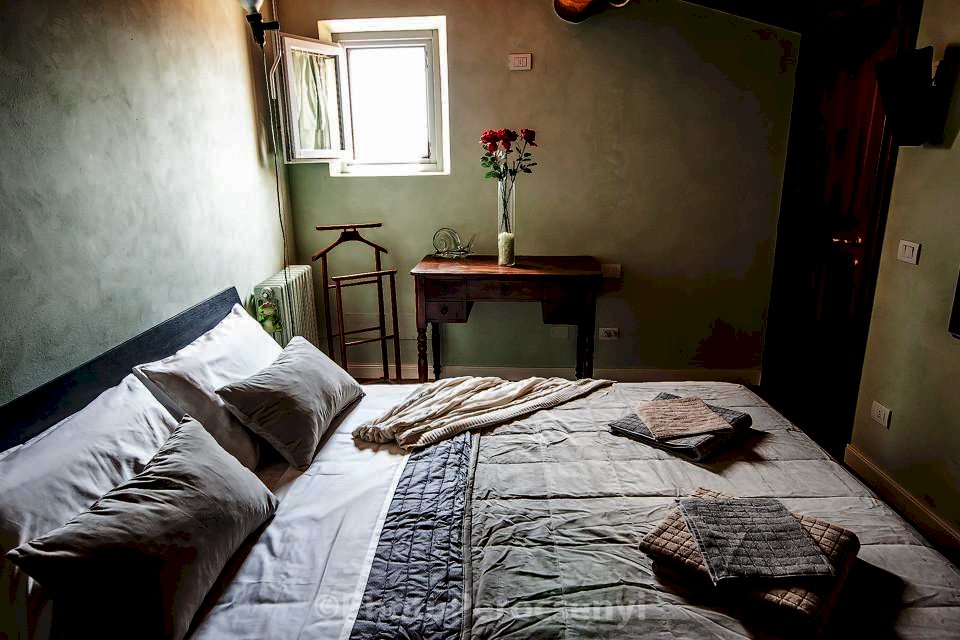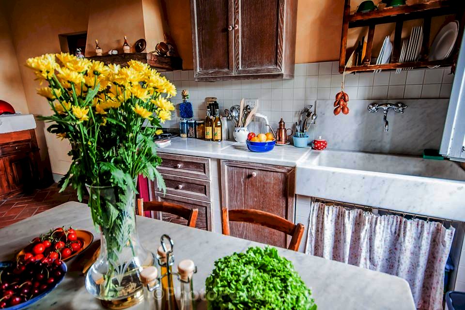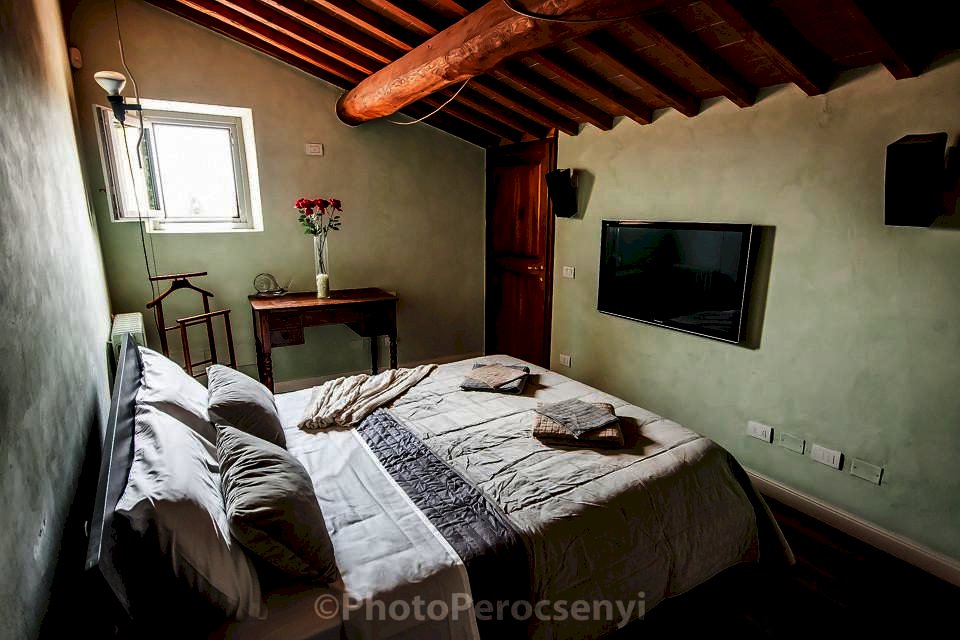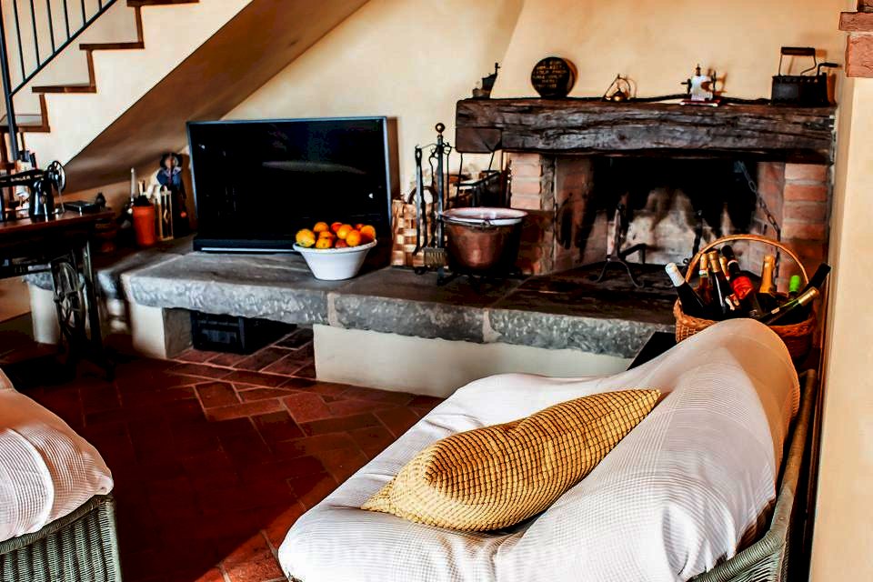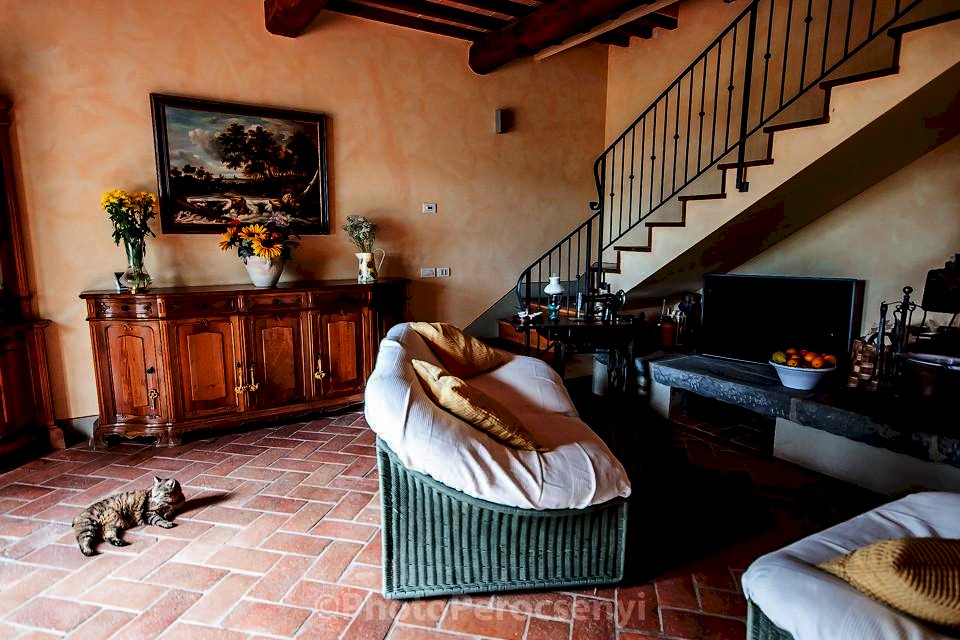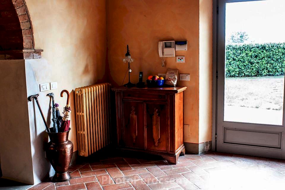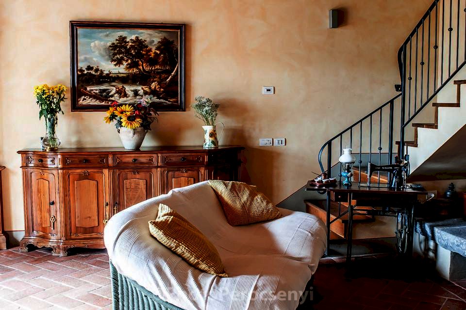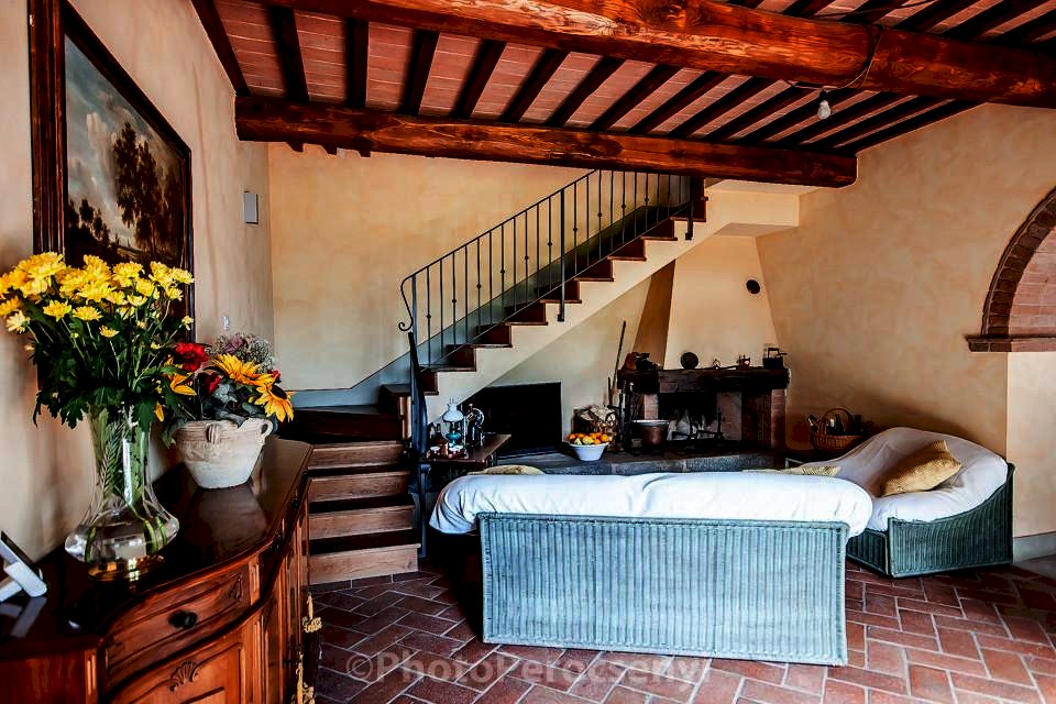 Montespertoli versante Empoli - Porzione di colonica sapientemente ristrutturata da esperta mano di architetto , usando materiali di pregio, in complesso colonico, dal sapore tipico toscano con pavimenti in cotto antico, pietra serena, e travi a vista in castagno. si accede all' immobile dal giardino esclusivo molto ben curato, per accedere al soggiorno con grande camino, cucina in muratura con dettaglio di un grande lavabo in un unico blocco di marmo oltre a bagno e lavanderia. Al piano superiore due camere matrimoniali di cui una soppalcabile, bagno finestrato, oltre alla terza camera tutte pavivimentate in parquet di quercia .Ottima posizione collinare con vista sulle colline toscane fino a scorgere all' orizzone paesi del chianti , oltre a giardino escusivo recintato con predisposizione vasca idromassaggio -