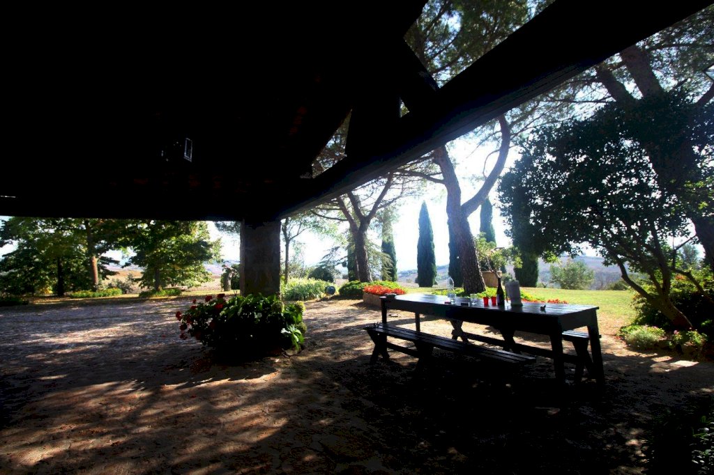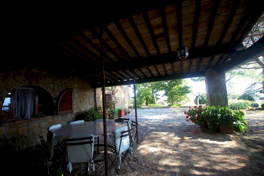 Nel cuore della Valdorcia, a Km 4 da Pienza, bellissima proprietà composta da un casolare di mq 463 e da due tettoie per un totale di mq mq 75 e terreno per HA 5 completamente recintato. Il casolare è composto al piano terra da un grande soggiorno, al quale si accede da un'ampia e panoramica tettoia che si affaccia sulla città di Pienza, all'interno di questo soggiorno vi è un bellissimo camino toscano, cucina, bagno, ripostiglio, zona biliardo, locali adibiti a cantina e legnaia.
