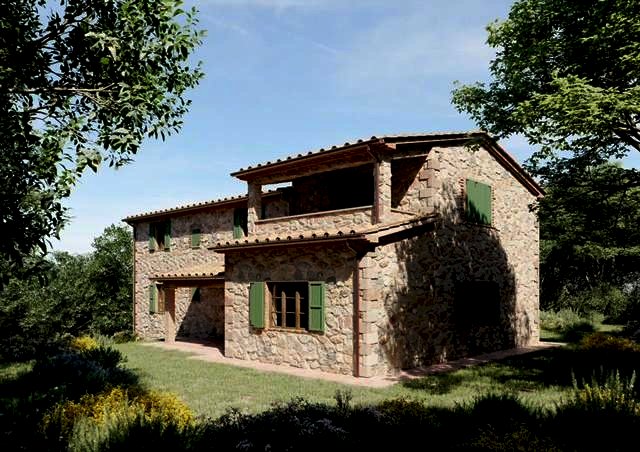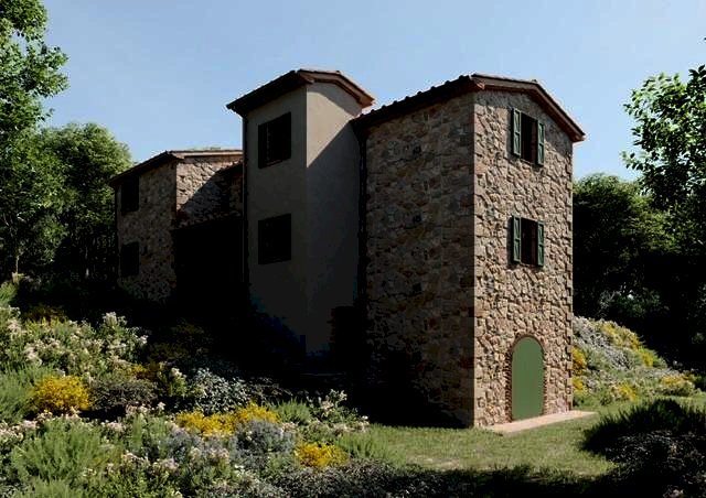 Collina Toscana 10 km dal mare in posizione collinare casale in pietra su due piani