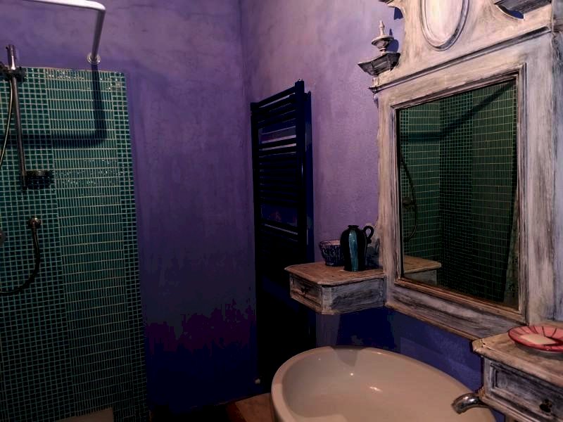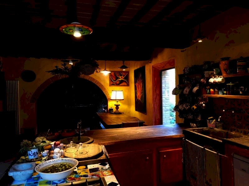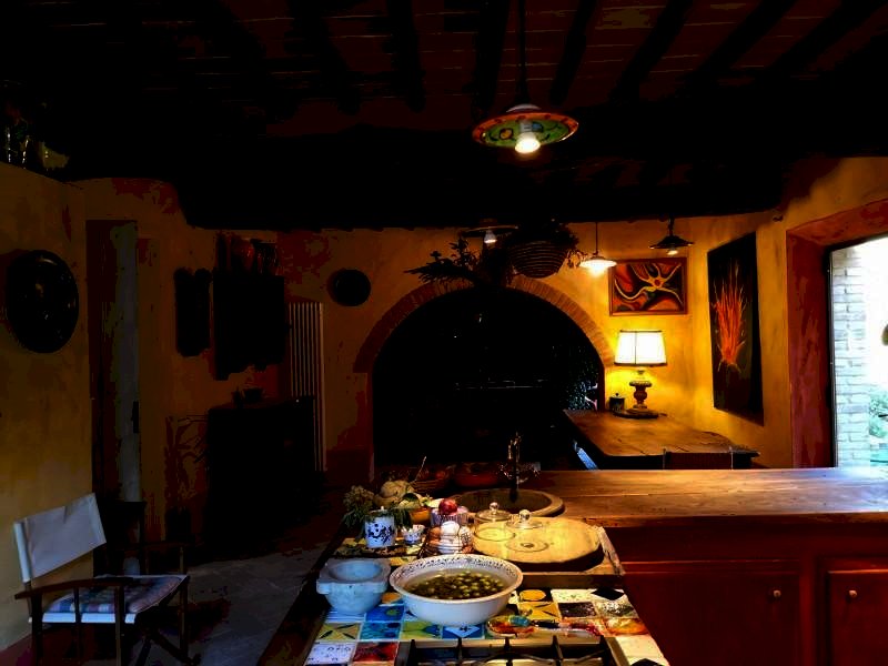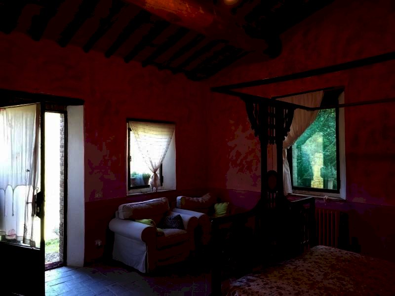 CAPOLUOGO - San Gimignano In posizione collinare, immersa nel verde della campagna di San Gimignano, a circa 3 km. dalla città, porzione di casale tipicamente toscano di circa 270 mq. di superficie ( sui 500 mq. circa dell'intera proprietà) il tutto circondato dal giardino oltre a circa 21 ha. di terreno. La porzione di casale in oggetto, perfettamente ristrutturato nel rispetto dei canoni di bioedilizia con l'uso di materiali naturali quali il sughero, la calce ecc. il riscaldamento è assicurato da un termo camino con produzione anche di acqua calda oltre al possibile utilizzo dell'impianto a GPL., e si compone al piano terra di: ampia zona giorno open space con la suggestiva cucina e la sala pranzo affacciata sul giardino, il soggiorno caratterizzato dal grande caminetto, lo studio con le ampie finestre, il bagno oltre al disimpegno da cui si accede al primo piano con una camera matrimoniale con annesso soppalco-studio, l'altra camera matrimoniale, due bagni, la bellissima terrazza abitabile con accesso anche dall'esterno. La proprietà è arricchita da una terza camera con il bagno posta al piano terra con ingresso indipendente dal suo giardino. Annessa alla proprietà una metà di capanna, per circa 30 mq. attigua da ristrutturare oltre ai 21 ha di terreno su cui insistono due sorgenti oltre ad un pozzo artesiano che ne garantisce l'acqua. La struttura è raggiungibile percorrendo circa 2000 mt. di strada bianca.