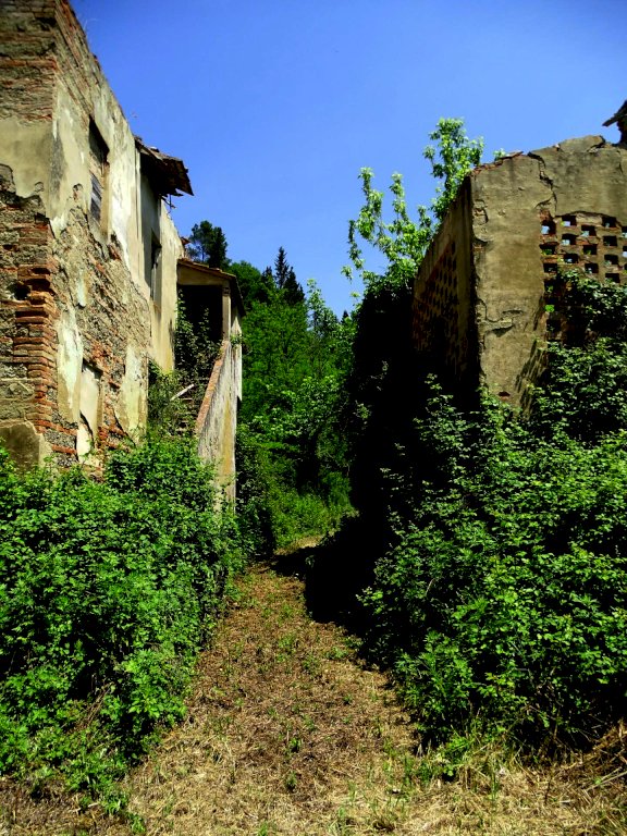 E’ composto da due fabbricati diruti, originariamente a due piani, per una superficie complessiva di 745 mq. circa (604 mq. la casa colonica, 141 mq. il fienile), totalmente da ricostruire, e una casa a solo di più recente edificazione, da ristrutturare, disposta su due livelli per 320 mq. di superficie totale, oltre a soffitte praticabili (ulteriori 140 mq. circa). Il piano terra della casa ospita quattro locali (tutti dotati di proprio accesso dall’esterno) adibiti ad uso magazzino, sgombero e garage, e la stanza di ingresso dell’abitazione. Da questa un vano scala conduce ai piani superiori. Il piano primo comprende cucina con ripostiglio, ampia sala con terrazza, disimpegno, bagno e due spaziose camere matrimoniali, di cui una con terrazza. Le due terrazze sono entrambe abitabili (circa 18 mq. ciascuna).