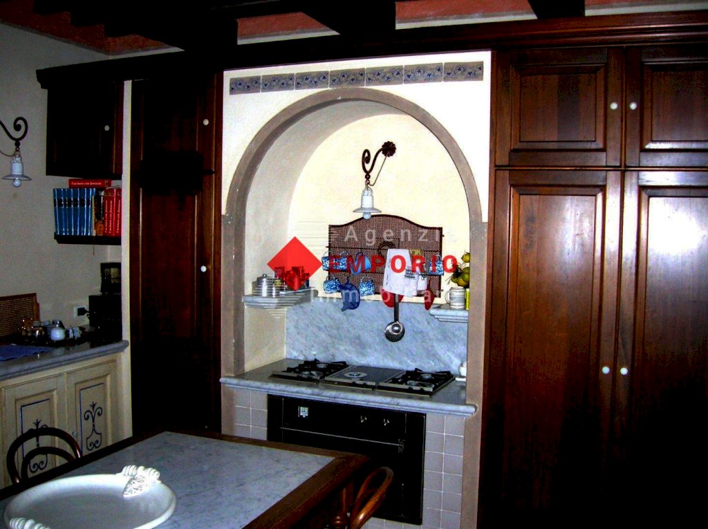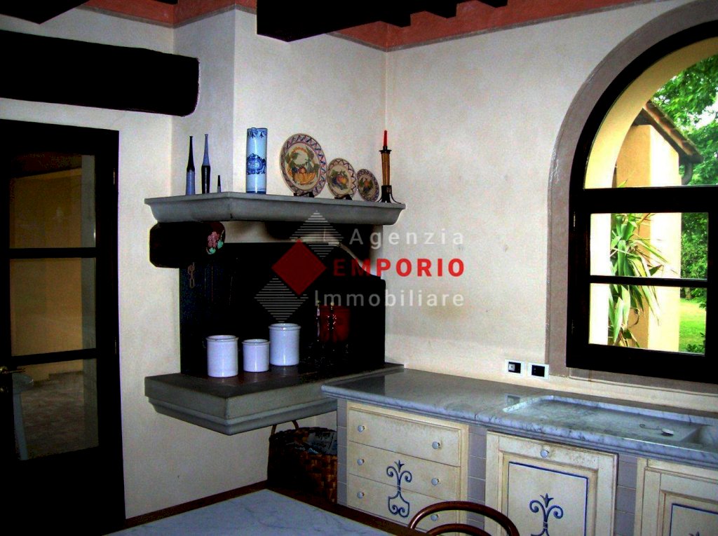 Il fabbricato si sviluppa su tre livelli, al piano terra abbiamo, ingresso, soggiorno doppio, taverna con ripostiglio dalla quale si accede all'esterno e al forno, sala pranzo, cucina abitabile, doppio loggiato di cui uno chiuso, disimpegno dal quale si accede a bagno con lavanderia; attraverso bella scala a vista si arriva al piano primo, costituito da tre camere di cui una con cabina armadi, ed una con piccolo loggiato, due bagni. In adiacenza, e accessibile anche attraverso scala esterna, troviamo una parte del piano già predisposta per altra unità, composta da soggiorno, cucina, camera e bagno; da questo piano si raggiunge la mansarda dove abbiamo bel vano con splendida vista sul giardino e un ripostiglio.