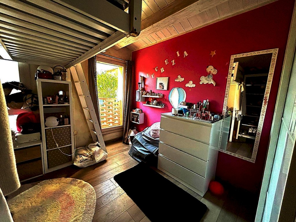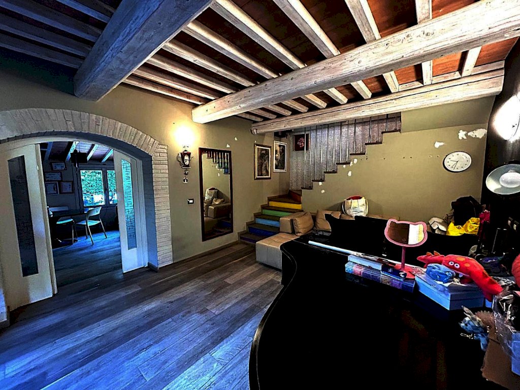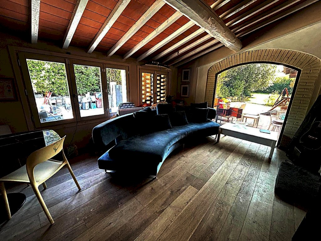 NELLA PRIMA CAMPAGNA TRA VINCI E SANT'ANSANO, A POCHISSIMI MINUTI DA SOVIGLIANA E DA TUTTI I PRINCIPALI SERVIZI, in contesto colonico bifamiliare, porzione angolare libera sui tre lati di casa colonica completamente ristrutturata nel 2015 mantenendo le caratteristiche tipiche del rustico toscano con travi a vista e mezzane. L'immobile ristrutturato con materiali e finiture di pregio , pavimenti in parquet e gres porcellanato, riscaldamento a pavimento, impianto di allarme e climatizzazione, è sicuramente di pregevole fattura con grande attenzione ai minimi dettagli. Disposto su due piani, è composto al piano terra da ingresso, soggiorno, cucina abitabile, ripostiglio, bagno finestrato con doccia , secondo soggiorno ampiamente finestrato e loggia. Una bella scala ci conduce al primo piano composto da due camere matrimoniali, una delle quali con grande cabina armadio, una camera doppia e un grande bagno finestrato provvisto di vasca e doccia. L'immobile è circondato sui tre lati da resede pavimentata e giardino.Il riscaldamento a pavimento alimentato con pompa di calore e i pannelli fotovoltaici garantiscono un'efficienza energetica di ultima generazione con classe energetica A3