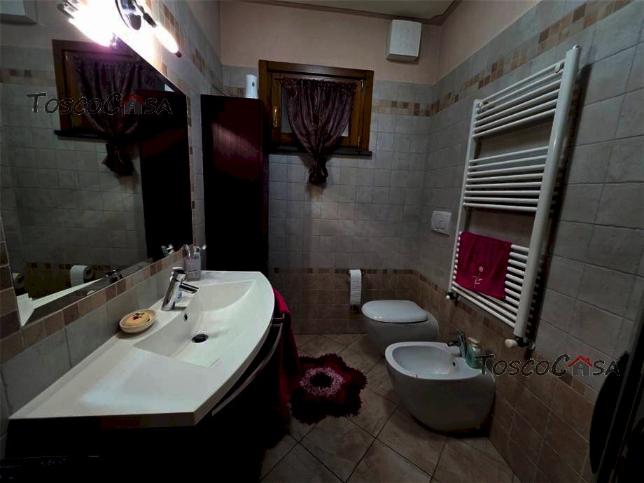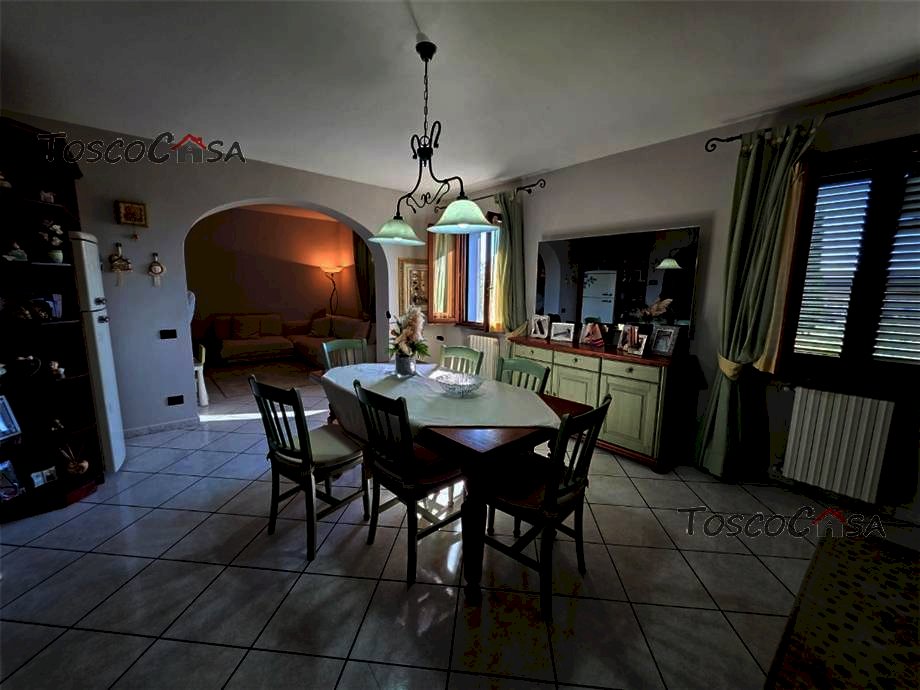 RIF1102 Fucecchio ottimo appartamento al piano primo, con ampi locali accessori al piano terra. L'appartamento con ottime rifiniture, è composto da ingresso, grande cucina/soggiorno con camino, camera matrimoniale, camera con guardaroba, cameretta/studio e bagno finestrato. Al piano terra collegato da scala interna troviamo due ampi vani con bagno e una grande tettoia adatta per cene o altro; completa la proprieta' l'uso di un' ampia zona verde a giardino. L'appartamento è pronto per essere abitato, ottime finiture e completo di zanzariere, condizionatori, addolcitore, allarme e aspirazione centralizzata. L'immobile adatto anche a genitori e figli che vogliono vivere insieme ma con indipendenza.