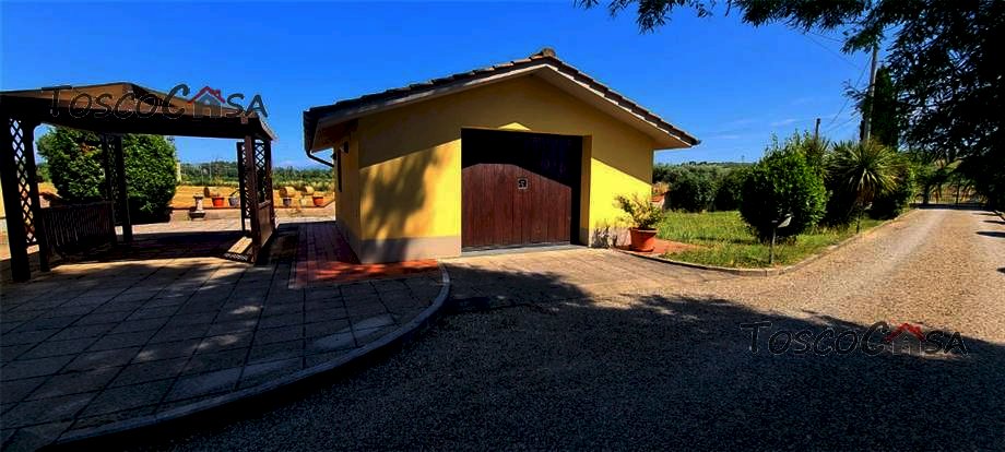 Ottime rifiniture, il riscaldamento è autonomo ed è dotato di condizionatori. Completa la proprieta' un ampio giardino esclusivo di circa 400 mq. con garage e altri 1400 mq. di terreno adiacente all'abitazione. Immobile adatto anche a due nuclei familiari.