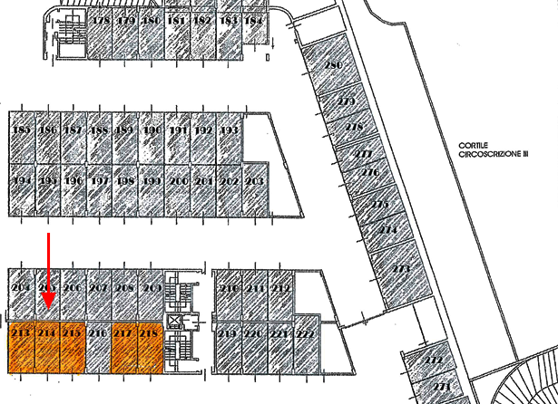 Locale ad uso autorimessa sito nel comune di Torino - Via Envie al piano terzo interrato. La superficie catastale è di mq 19.