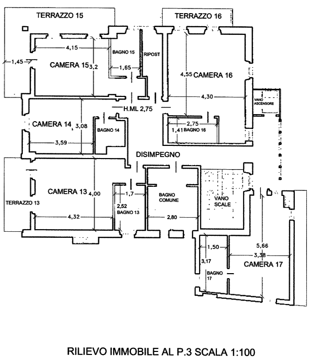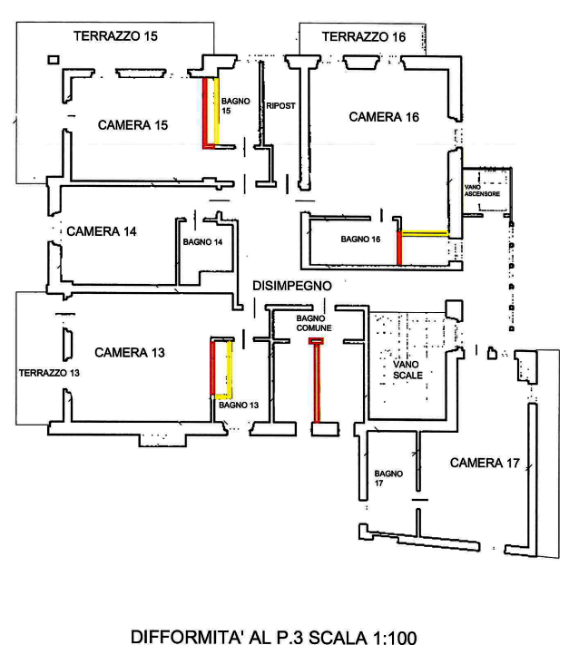 ripostiglio e il disimpegno con accesso dall'ascensore; al piano quarto-sottotetto vi sono sei camere con bagno il disimpegno e due ripostigli.