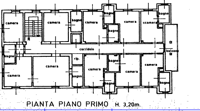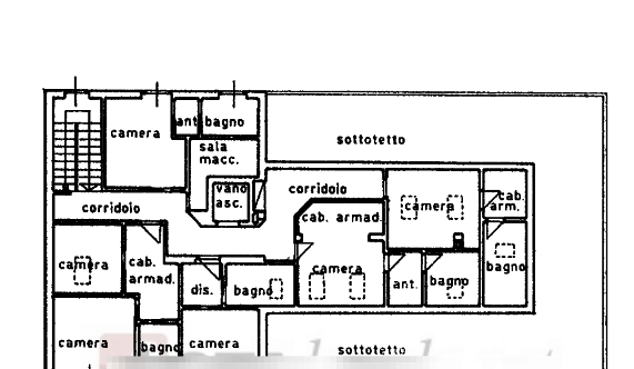 - Appartamenti: ciascuno composto da sei locali adibiti a camere, cinque bagni con disimpegni, corridoio centrale, vano ascensore con sala macchine, e porzione di sottotetto non accessibile.