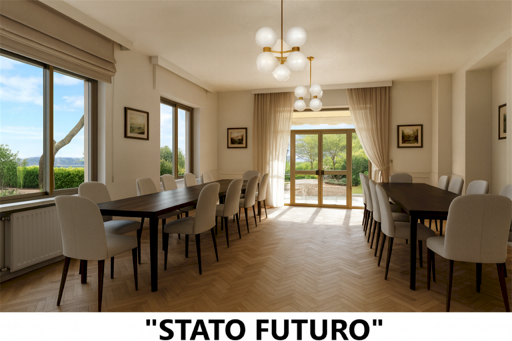 Stato Attuale: 12 Camere, 14 Bagni, Salone, Sala Ristorante, Cucina e ampia zona tecnica.
