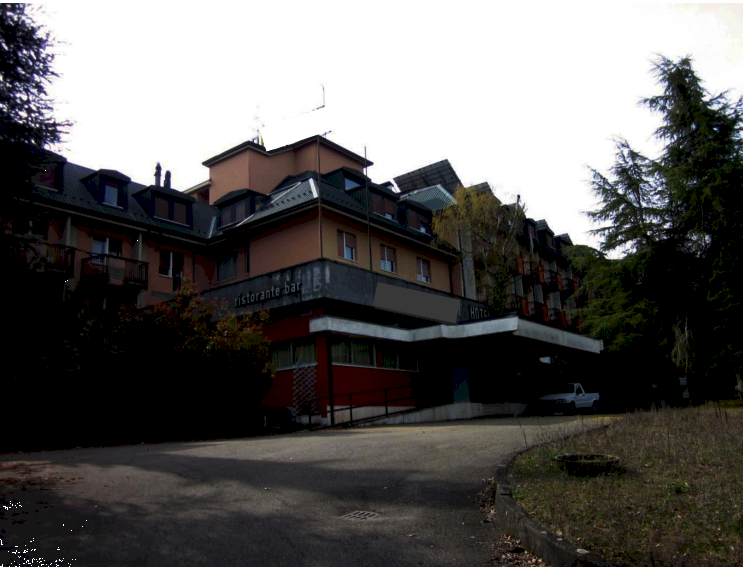 Il complesso è inserito in un'ampia area esterna prevalentemente adibita a giardino, con pertinenze e locali tecnici, e si configura come una struttura ricettiva di grandi dimensioni con rilevanti potenzialità di riqualificazione.
