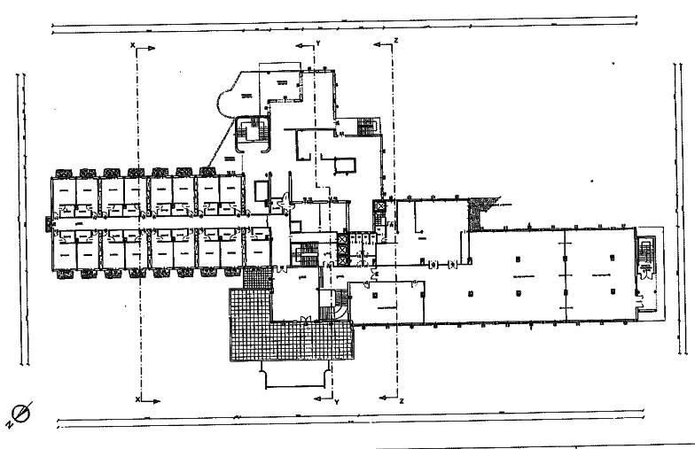 La porzione A comprende la sezione alberghiera principale, sviluppata su più piani fuori terra, con hall, spazi comuni, sale congressi e numerose camere, oltre al lastrico solare.