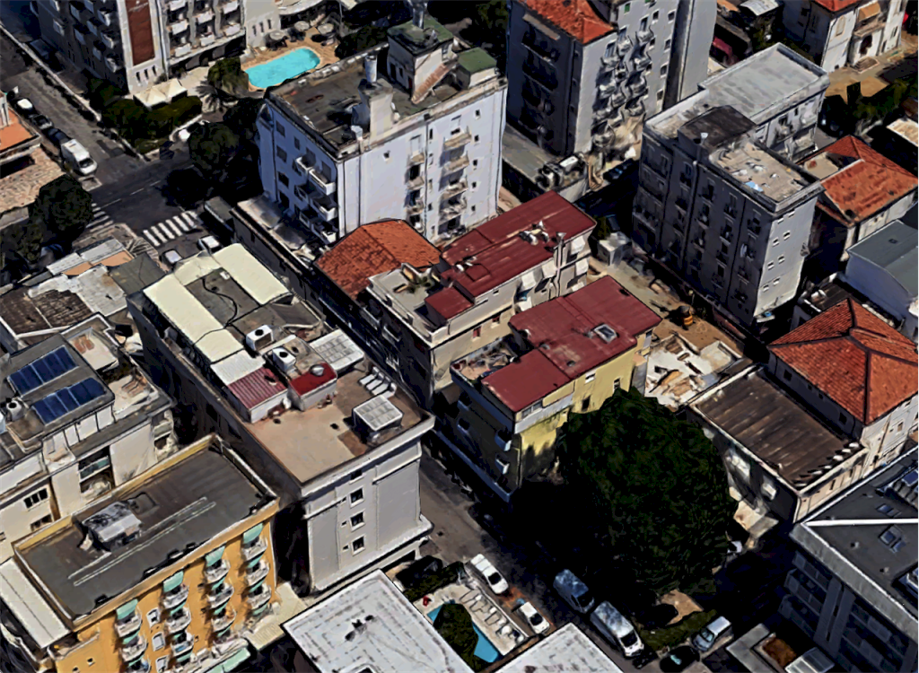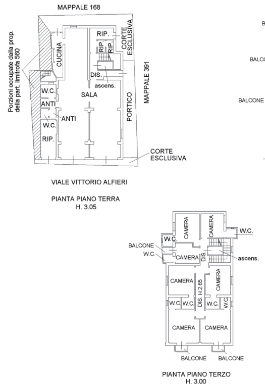 L'immobile è composto: al piano terra da hall/soggiorno/bar, sala da pranzo, sala TV, antibagno, bagno, ripostiglio/spogliatoio personale con antibagno e bagno, deposito bottiglie/sottoscala, cucina, vano scala interno, vano ascensore interno, sala macchine ascensore, portico e corte scoperta/marciapiede (lato strada); al piano primo da sette camere, di cui due singole e cinque doppie, disimpegno/corridoio, terrazzo, deposito, vano scala interno e vano ascensore interno; al piano secondo da sette camere, di cui due singole e cinque doppie, disimpegno/corridoio, vano scala interno e vano ascensore interno; al piano terzo da sette camere, di cui due singole e cinque doppie, disimpegno/corridoio, vano scala interno e vano ascensore interno; al piano quarto da ingresso/salottino, cucina/pranzo, tre camere, bagno, disimpegno, terrazzo, balcone, vano scala interno e vano ascensore interno.
