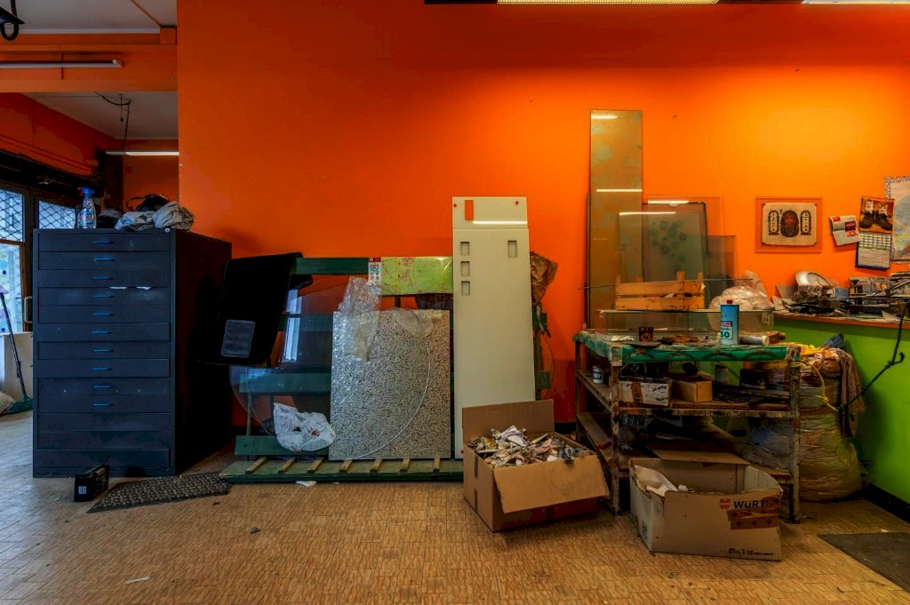 Si tratta di più ambienti attualmente suddivisi in: negozio, laboratorio, ufficio, due magazzini, bagno, ripostiglio; ma è facilmente modificabile in un ambiente unico, di tipo "open-space" dalla superficie netta complessiva di circa 148 mq.