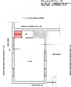 Laboratorio a Roma in Via Offagna al piano terra, della superficie di 101,64 mq facente parte di un piccolo edificio con accesso carraio e pedonale composto da un grande locale di forma regolare, nel cui interno sono stati ricavati lungo il confine un piccolo ripostiglio, un locale w.c. ed un soppalco. E' compresa nella metratura un'ampia area esterna di carico e scarico agilmente fruibile.