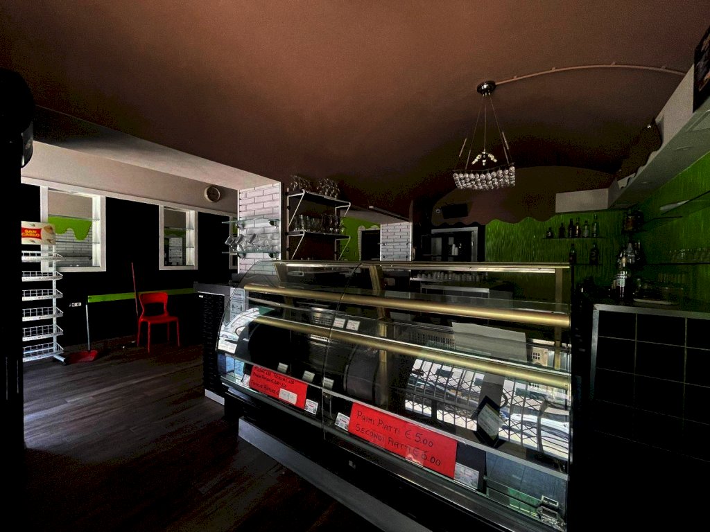 Composto da sala d'ingresso con bancone Bar attrezzato e tavolini, ampia sala con tavolini, Cucina attrezzata cappe di aspirazione, sala slot machine, altra sala finestrata con tavolini, bagno e spogliatoio staff, bagno per i clienti e piccolo ripostiglio ad uso magazzino.