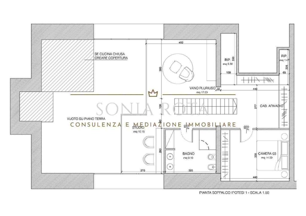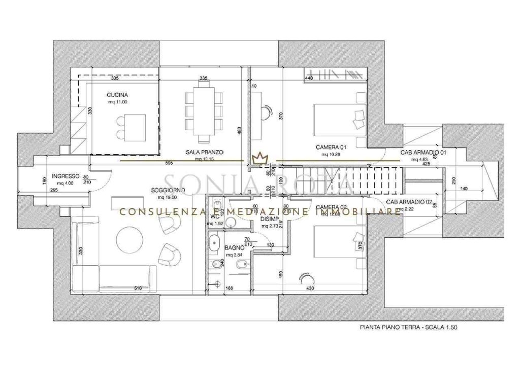 Al primo piano (90 mq) la zona notte ospiterà una lussuosa suite matrimoniale con cabina armadio e bagno privato. Completano l'ambiente altre due camere da letto, con ulteriore bagno di servizio, per garantire la massima comodità e privacy con ulteriore possibilità di creare un salottino di lettura e/o ufficio.