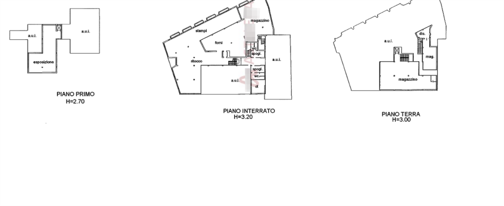 Un ufficio di 3,5 vani e 100 mq, quattro negozi di 638 mq, tre autorimesse di 204 mq, 82 mq, 53 mq, locali commerciali 1203 mq.