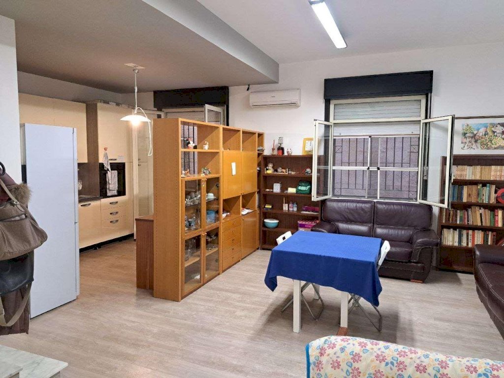 Magazzino all'interno di un elegante complesso residenziale costituito da due edifici (entrambi di sette piani) con ventitré abitazioni distribuite nei cinque piani fuori terra, e cinquantatré magazzini nei due piani seminterrati, il locale si trova in zona semicentrale a soli 100 metri dal panificio Modica in Via Venero e a 240 metri dall'incrocio con Via Circonvallazione, in posizione strategica a pochi passi da tutti i principali servizi e le comodità di cui hai bisogno. Dall'androne mediante l'ascensore, o in alternativa con la scala si accede al secondo piano seminterrato, dove la porta blindata all'esterno e l'allarme interno proteggono i locali da indesiderate intrusioni, scendendo tre gradini un primo grande ambiente con lato cucina si presenta alla vista dei visitatori, scendendo altri due gradini si accede ad un'intercapedine tra il magazzino e il muro di contenimento che prende luce dall'alto, un'ampia e confortevole camera da letto con cabina armadio (dove sono stati realizzati dei soppalchi), una cameretta, un moderno bagno con antibagno e doccia idromassaggio dove potersi rilassare dopo un'intensa giornata di lavoro, e infine un utile ripostiglio in parte soppalcato. Gli interni sono stati recentemente ristrutturati con cura e materiali di qualità, tutti gli ambienti sono stati climatizzati per garantire il massimo comfort in ogni stagione.