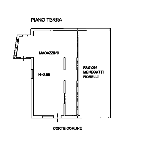 Trattasi di un magazzino al piano terra composto da una zona deposito ed una piccola area cortiliva esclusiva, oltre ad un vano uso deposito.
