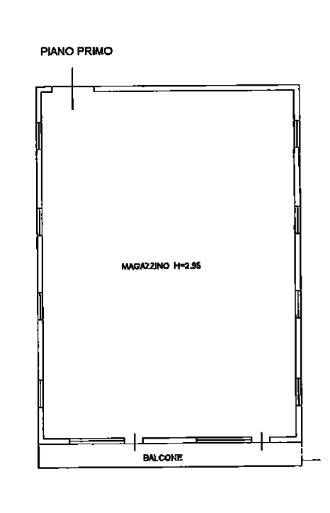 Trattasi di un magazzino composto da un unico ampio vano, oltre due servizi igienici dotati entrambi di antibagno; al piano primo il magazzino è composto da un unico ampio vano.