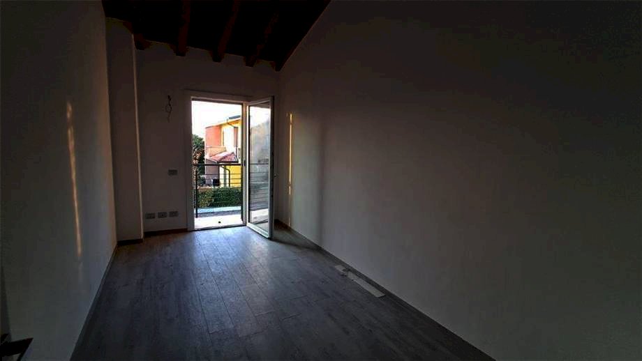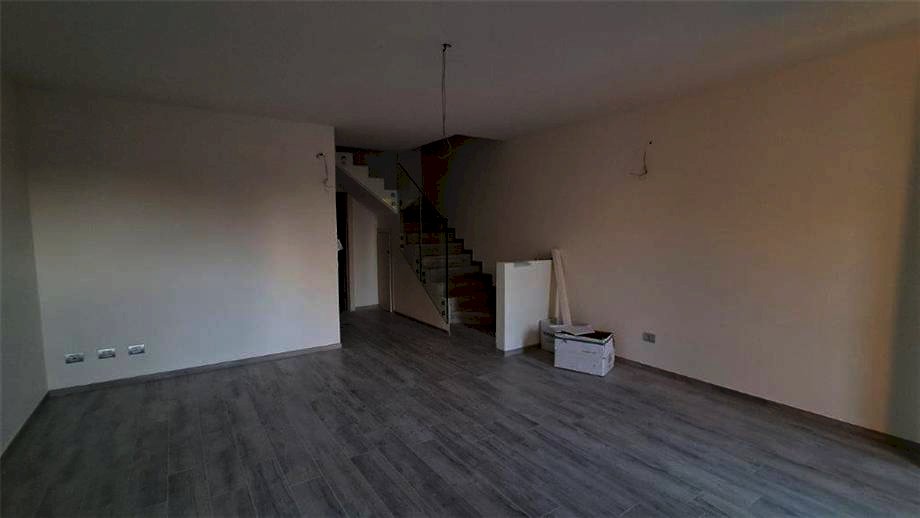 MORTIZZUOLO (MIRANDOLA) - NUOVA COSTRUZIONE - in zona residenziale, villetta a schiera di centro, disposta su due piani. Tramite un piccolo giardino anteriore si entra nel soggiorno con predisposizione per il camino o stufa, disimpegno, cucina, bagno e garage singolo. Una scala in muratura porta al primo piano, alla zona notte, con tre camere da letto, di cui una matrimoniale con balcone e due singole che accedono entrambe ad un secondo balcone, bagno con grande antibagno, vano tecnico al piano sottotetto. Nella parte posteriore della villetta, ulteriore piccolo cortile di accesso al garage. Riscaldamento a pavimento, fotovoltaico di 3,5 kW con batteria d'accumulo di 7 kW