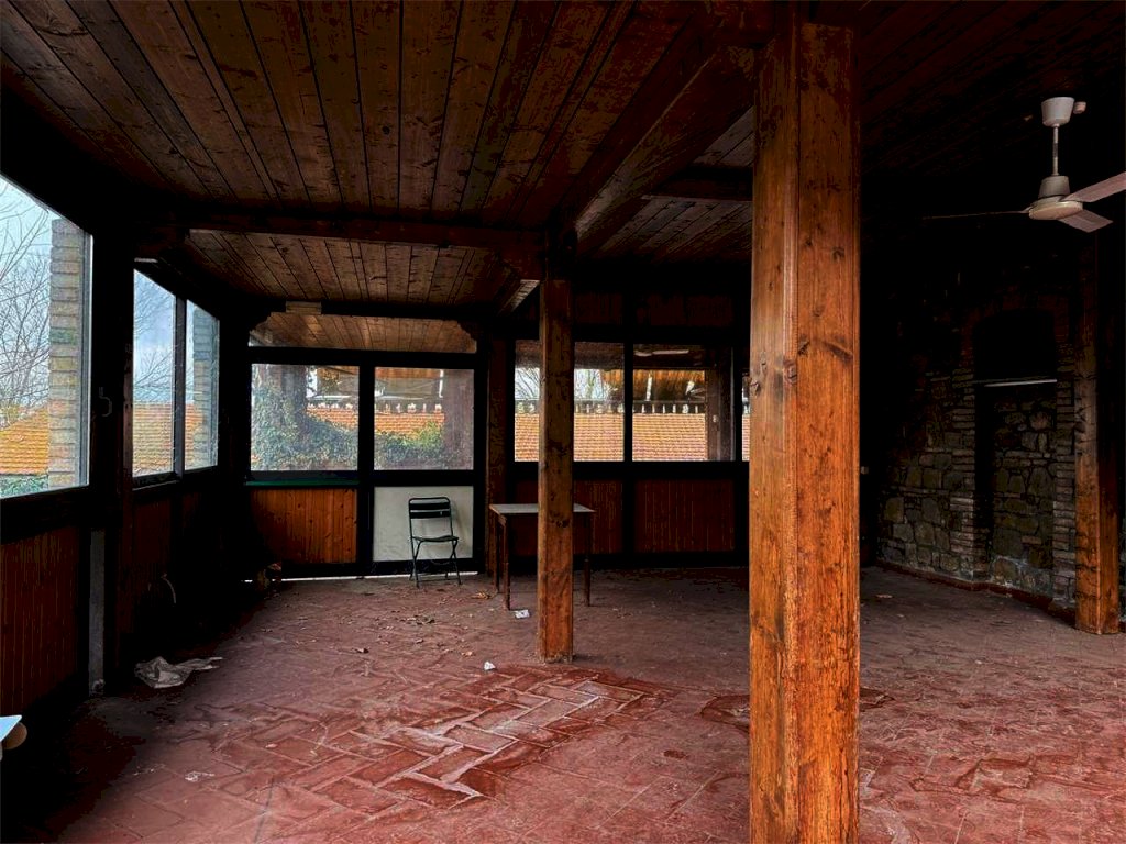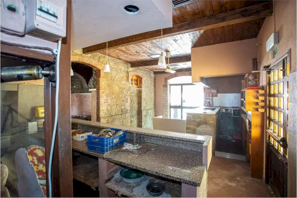 L'immobile è composto da due ampie e luminose sale principali con caratteristici soffitti a volta, una cucina, 3 bagni ed un antibagno oltre una veranda esterna coperta con un' area bar e forno a legna.