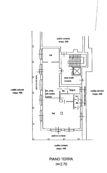 Bar posto al piano terra composto da locale principale, oltre a retro, vano per la preparazione di vivande, disimpegni e doppi servizi igienici.
