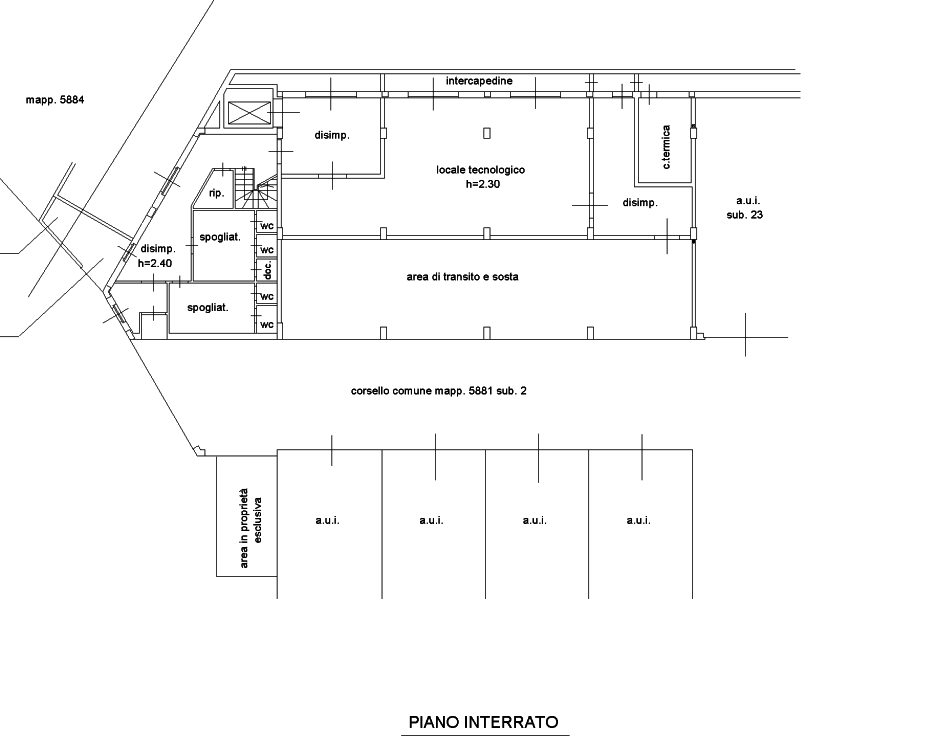 Il collegamento con il piano interrato avviene tramite una scala interna ed è presente da un blocco spogliatoi con servizi igienici divisi per sesso.