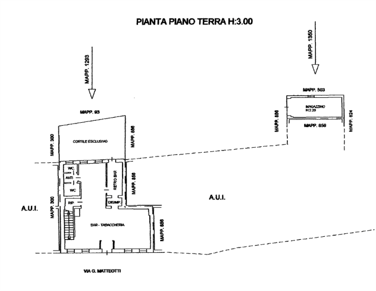 Locale commerciale su due piani ad uso bar-tabaccheria con cortile esclusivo oltre a locale magazzino e locale soffitta situato a Borgo Veneto (TV), località Megliadino San Fidenzio in via G. Matteotti.