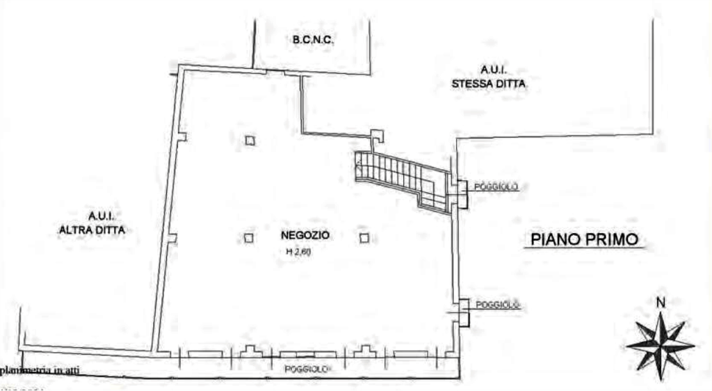 Negozio disposto su due piani con ingresso direttamente da Piazza Umberto I a Camisano Vicentino (VI), composto al piano terra da un vano adibito a locale di vendita, una zona secondaria adibita a ripostiglio; al piano primo zona adibita a magazzino e servizi igienici.