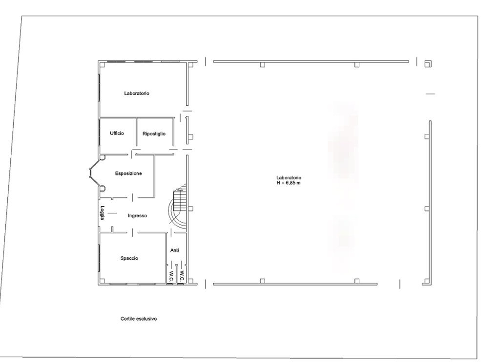 Fabbricato artigianale e commerciale con locali accessori e ad uso ufficio insistente su autonomo lotto di pertinenza situato a Gazzo (PD) in via F. Praloran. Costituito da laboratorio artigianale-industriale al piano terra per una superficie commerciale di 675 metri quadri e blocco uffici e locali accessori per una superficie commerciale di 500 metri quadri. Il cortile scoperto esclusivo circonda l'intero edificio ed è adibito anche a piazzale ed area di manovra.