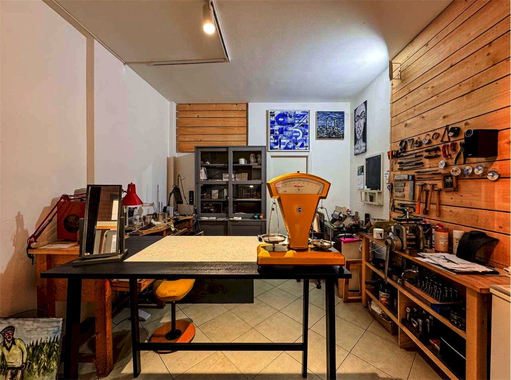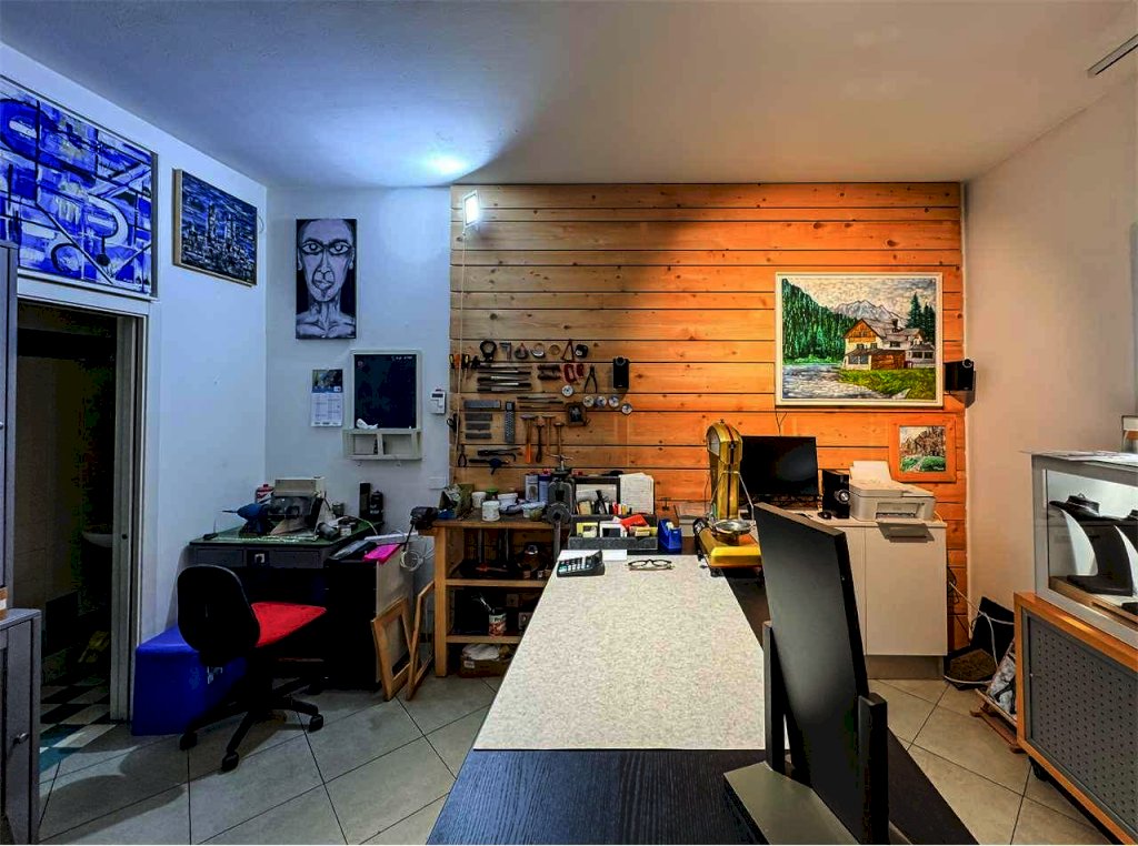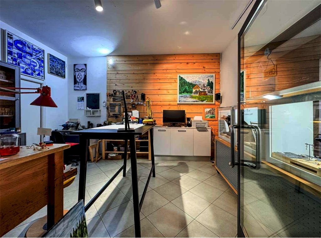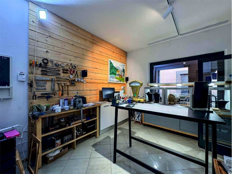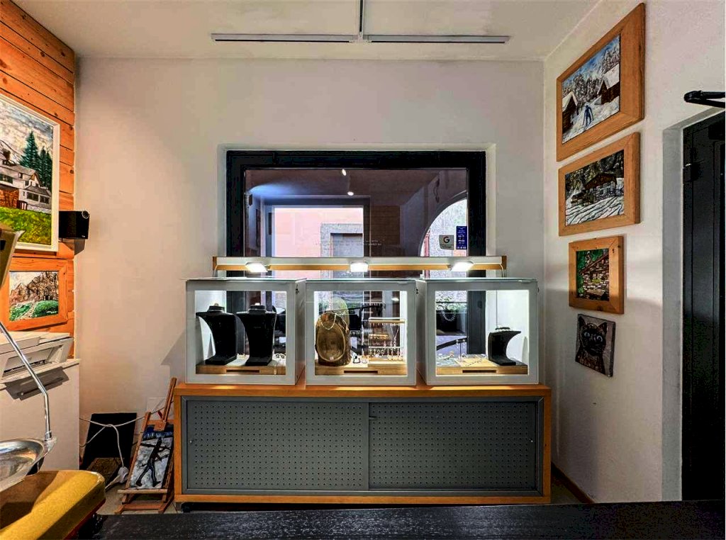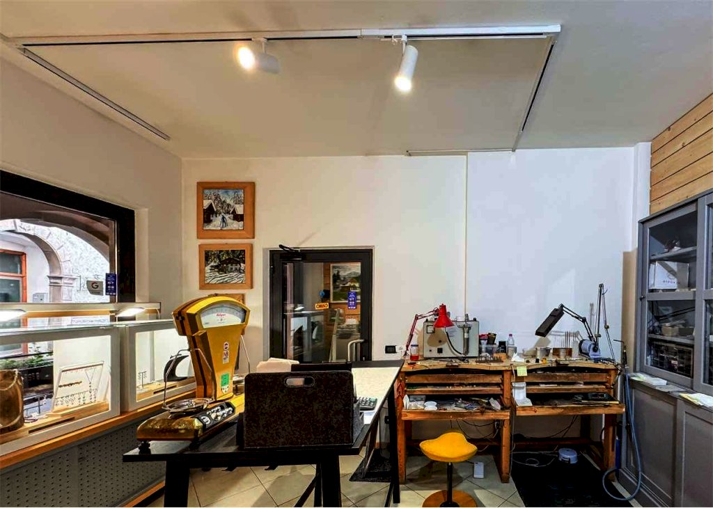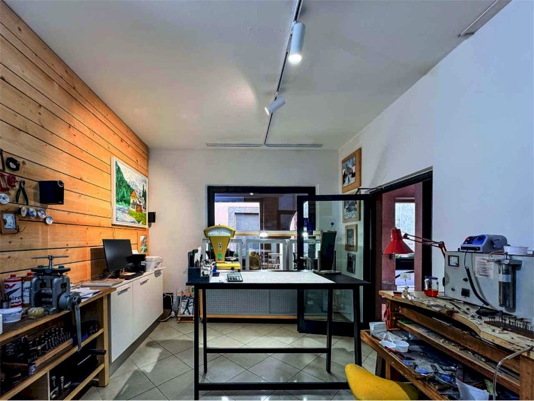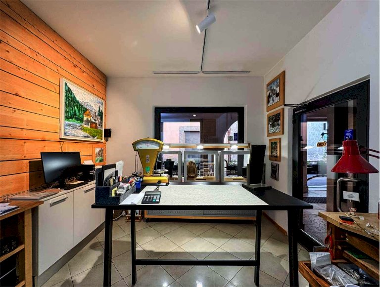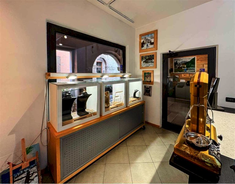La località di Malé (Val di Sole) ospita questo negozio con vetrina in via Brescia 21. L'immobile misura circa 74 mq e dispone di un'ampia vetrina sotto il portico pedonale. Attualmente è adibito a laboratorio orafo e comprende un luminoso spazio vendita/esposizione e un retro laboratorio/ufficio con servizio. Le finiture in legno e vetro danno calore e accoglienza, perfette per attività artigianali, showroom o studio professionale.