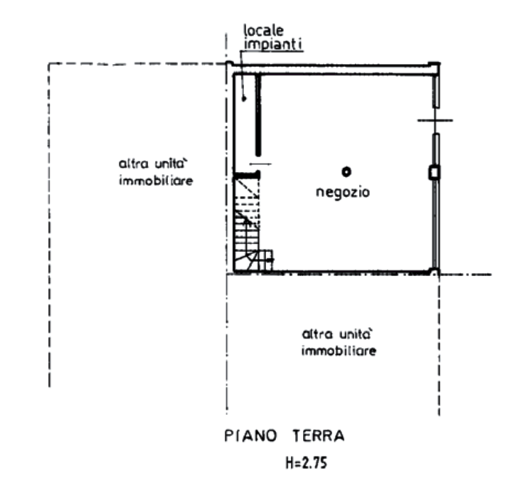 Negozio facente parte di un fabbricato situato nel Comune di Montebelluna (TV) in via Risorgimento, composto da negozio e locale impianti al piano terra; soppalco, antibagno e servizi igienici al piano primo.