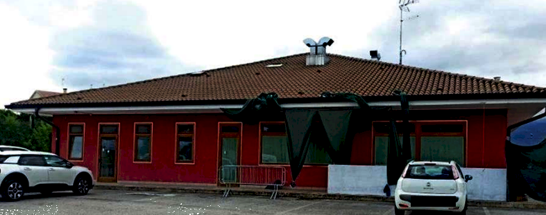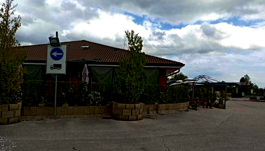 Precisamente edificio commerciale con locali e servizi accessori adibito a bar-ristorante, a un piano fuori terra, con piano interrato in corso di definizione; area scoperta di pertinenza di circa mq 5.050 adibita ad area di manovra e sosta veicoli.