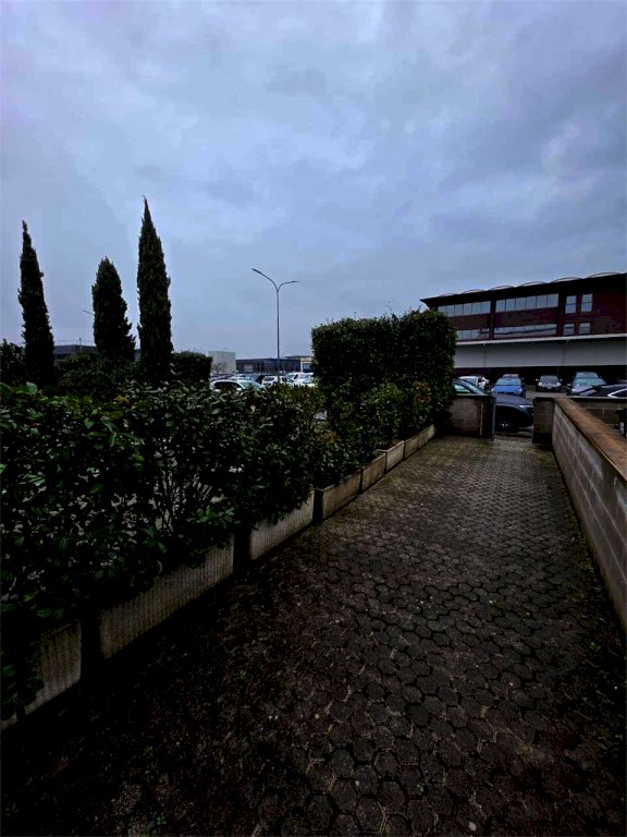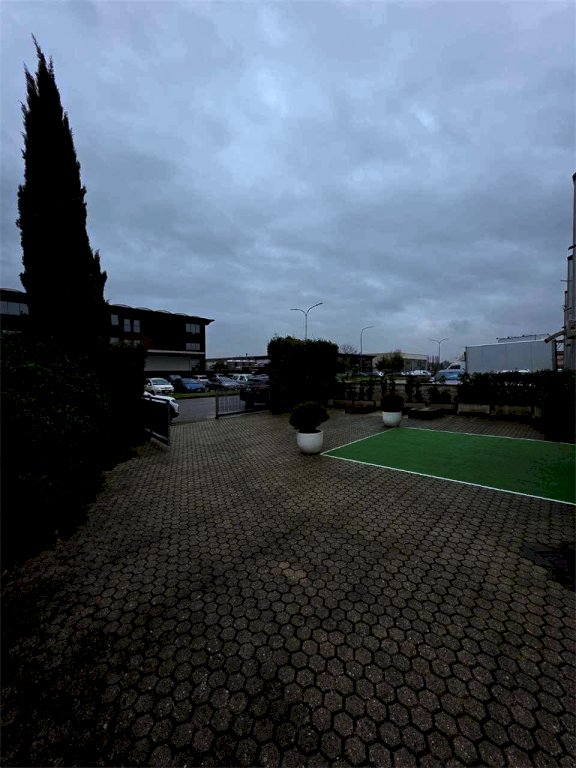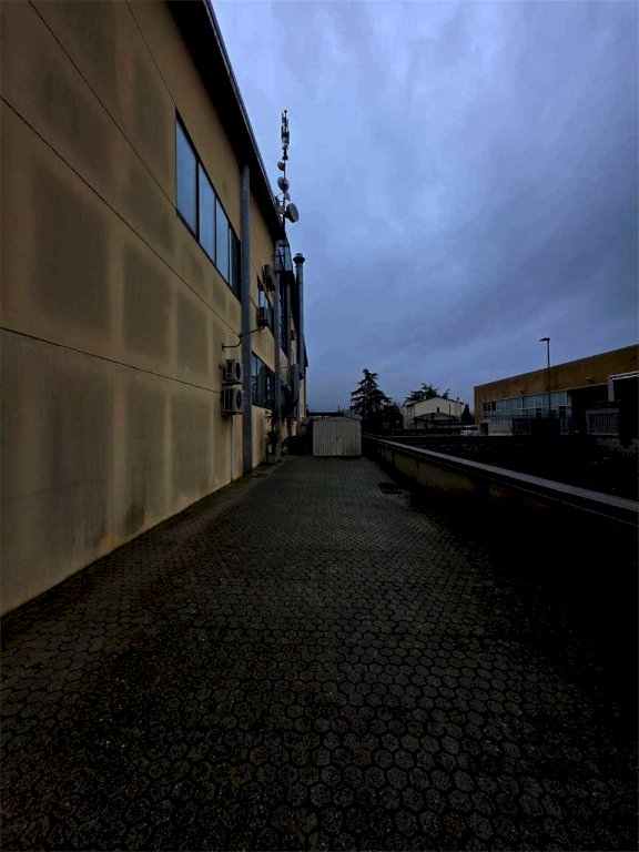 Conclude la soluzione: resede piastrellato privato del fondo commerciale di circa 300 mq utilizzabile per parcheggio e/o scarico/carico merci e resede frontale di ingresso dell'ufficio.