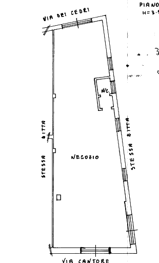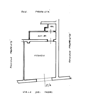 Negozio sito a San Cesareo (RM) in Via Antonio Cantore, costituito da un ampio ambiente di forma trapezoidale. L'unità è dotata di doppi servizi igienici, entrambi con antibagno, di cui uno destinato ai diversamente abili, oltre a un locale cucina attualmente dismesso. Nel complesso l'immobile si presenta come uno spazio commerciale di buona ampiezza, adatto a diverse tipologie di attività.
