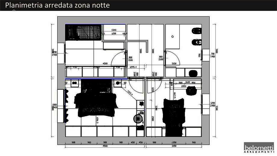 L'abitazione si sviluppa su due livelli, collegati da scale interne: il piano terra accoglie la zona giorno open-space con cucina a vista, disimpegno con angolo lavanderia ed un bagno di servizio. La zona notte al piano primo è composta da 3 camere da letto, due balconi e un bagno con doccia.