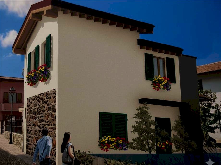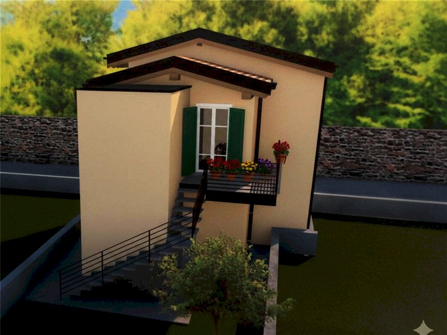 Composizione: Piano Terra con camera e bagno, abbracciato da un giardino privato sui tre lati. Piano Primo con soggiorno e bagno, più un balcone esterno. I due piani sono collegati da una scala esterna e da un montacarichi interno, da realizzare; modifica liberamente il layout per renderlo tuo!